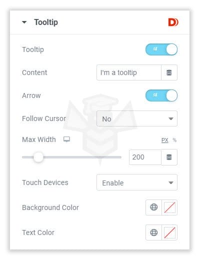 You can enable a Tooltip for any widget and even assign a dynamic text for the Tooltip. The following are the options available for Tooltip: